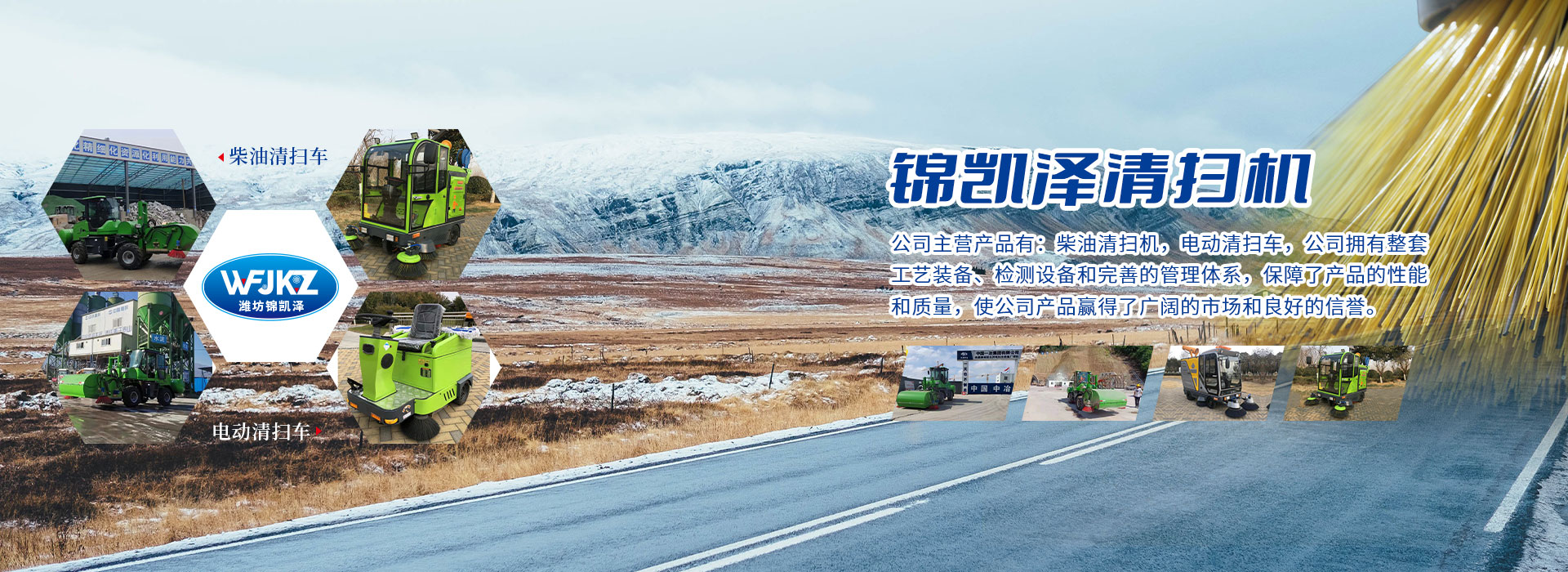 公司主营产品有:柴油清扫机,电动清扫车,柴油扫雪机,各种类型装载机设备改装清扫机。
